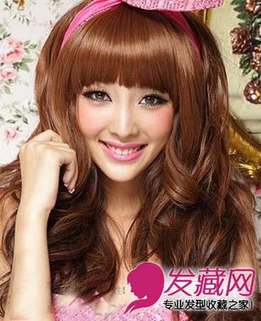 齐刘海可是卖萌利器啊!修饰整齐的齐刘海可以很好的弥补额头较窄的缺陷,配合两边的大卷发,可谓造型感十足,既能卖萌,又很成熟。