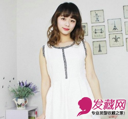 有点碎的刘海,两颊卷蓬松发尾,充满了空气感,看上去十分甜美,很有公主想,搭配连衣裙,就十足一位公主了!