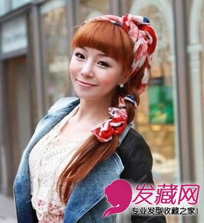 可以弄一个齐齐的厚重刘海,然后把后面的头发弄到一侧编成麻花辫,再加上头巾的装饰,漂亮而时尚,还有点儿别样的