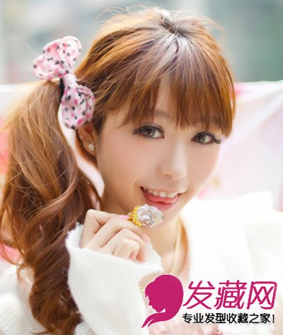 长卷发发型打造出一个侧扎的马尾发型,很有韩国女生范,搭配甜美的齐刘海发型,整个造型尽显时尚甜美感觉。