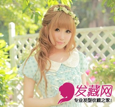 这款女生半扎发首先给我们塑造出一种公主般优雅的感觉,齐刘海的发型,打造出内卷的弧度,起到了很好的修颜效果,暖色系的染发颜色,将美眉的脸型衬得十分白皙,一圈花朵花环的装饰,衬得犹如仙女般美丽。