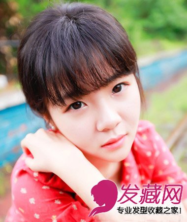 小清新范儿齐刘海发型,蓬松的齐刘海瞬间将宽脑门包住,修饰出精致的小V脸,甜美呆萌的软妹纸发型。