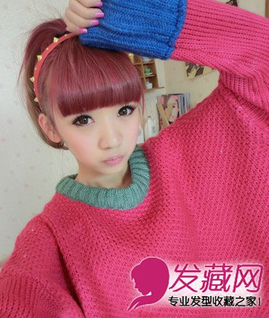 层次感的发型设计,厚重感的齐刘海发型搭配,为发型注入了甜美可爱的元素,搭配枚红色染发,俏皮活泼十足。