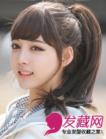 乖巧可人的发型,齐刘海打理的十分整洁,简单的马尾辫发型很好的衬托出了学生的清纯甜美。