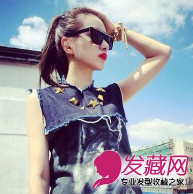 小清新们最爱的简单无刘海发型扎发,露额的长发扎简单的马尾辫,很有清新甜美气质,搭配墨镜帅气显个性。
