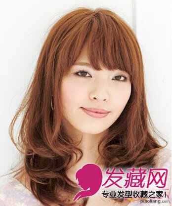 发型点评:棕红色长卷发饱满浪漫,散发出甜美女人味。别致的刘海修饰额角,凸显优雅气质。
