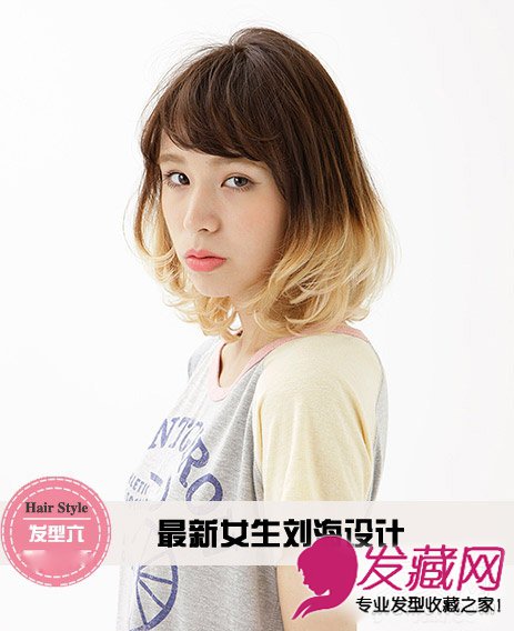 发型点评:斜刘海沿着眉形摆动,轻盈俏皮感十足。搭配渐变色染发设计,时尚个性。