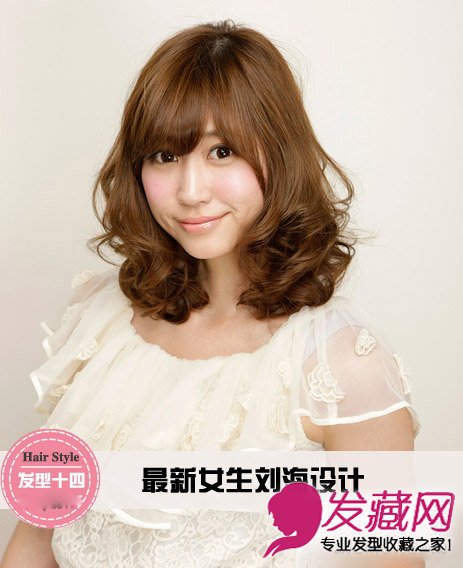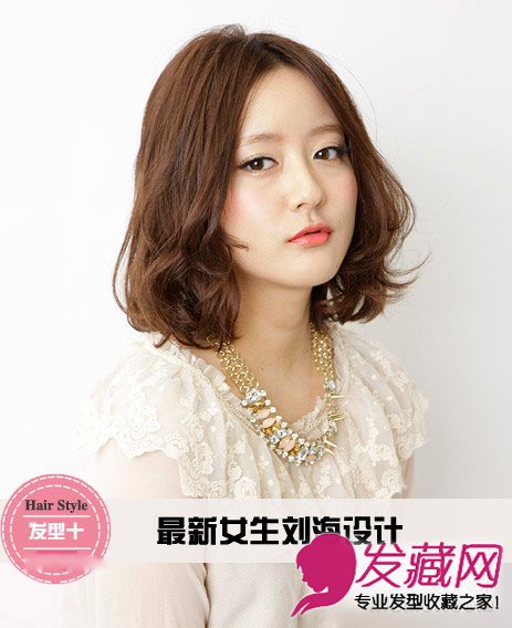 发型点评:内扣卷发甜美动人,斜刘海修饰脸型,展现出甜美气息。