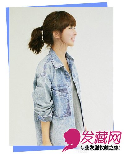 内扣的齐刘海蓬松有空气感,两鬓留出稍长发丝,修饰脸型,扎起的马尾清爽甜美,甜美清爽还易打理。
