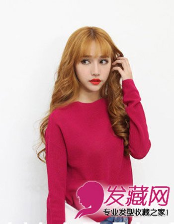 女王范十足的一款空气感长卷发发型,并不是只有中分发型才能营造也女王般的气场,韩式空气感刘海长卷发也可以的,配合时尚的螺旋卷发更显浪漫情怀。