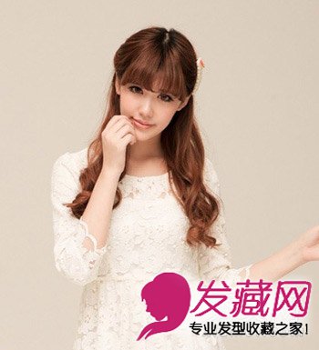 一款很显女生的优雅清纯气息的齐刘海长卷发发型,这种半扎式的公主头发型配合浪漫的长卷发与清新的栗色染发最显女生的清纯感了,而整齐的刘海更显凸显女生脸型的精致小巧。