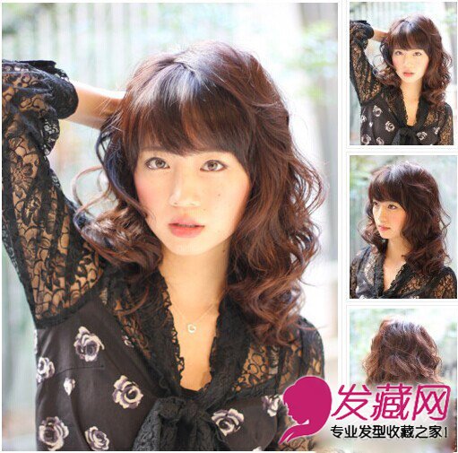 厚重的发型可以通过刘海显得自然,就像此款造型一样将刘海剪出碎发的造型,搭配上不规则的卷度更有时尚的气息。