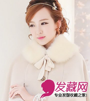 带点复古味道的女人盘发造型,棕色的卷发来个符合圆脸的侧分之后,简约盘起来,佩戴发箍,温婉端庄之美。