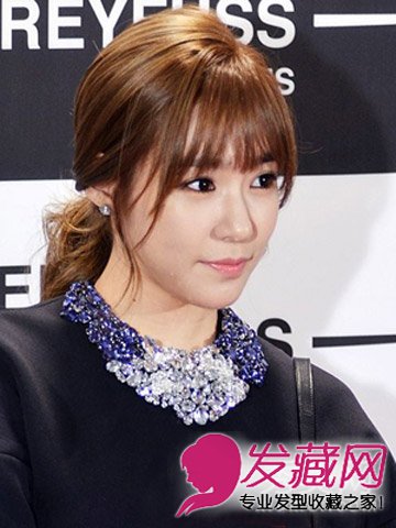 韩式简单扎发发型,这款碎剪的齐刘海也很有清新气质,飘逸的刘海发丝修饰出精致的瓜子脸,甜美显清纯。