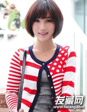 同样是一款很显清新甜美风的女生平刘海波波头发,相比上一款波波头发型这种发型更简单也更显女生的清爽感,直发的发梢造型与简的平刘海相搭最适合走学院风的妹纸们了。