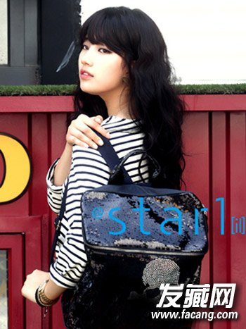 圆脸适合的发型设计,萌妹纸们最爱韩式齐刘海长卷发,波浪卷度打造出十足的发量感,烫卷的齐刘海清新潮范儿,搭配披肩卷发修饰出精致的瓜子脸。