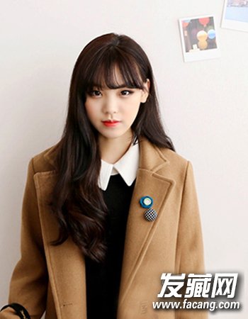 再是一款很受大家喜爱的韩式空气感刘海长发发型,这种利用空气感式的刘海造型再配合女生清新自然的长卷发更显女生脸型的小巧与气质的清纯感。