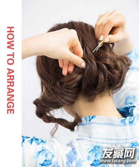 step2:将辫子拉扯出蓬松的轮廓后用发夹固定。