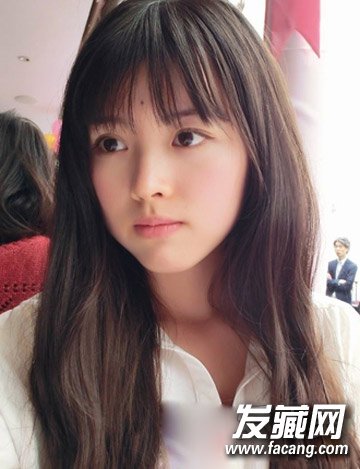 最具古典之美的鹅蛋脸型,清秀的五官让女生更出众,甜美的齐刘海减龄修颜,披肩长发自然微卷,穿搭白衬衫,年轻时尚的OL范。