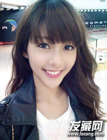 空气感的齐刘海不仅起到扬长避短的作用也显得眼睛格外明亮可人,层次感的卷发发型,亚麻色的时尚染发,优雅升级,穿搭皮外套,不失酷感。