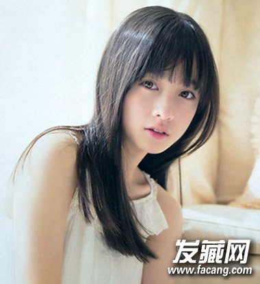 这款日系风格的萌系发型也适合90后的学生妹,垂顺的直发发型,碎发的齐刘海很好的展现出漂亮的五官,素雅清新的邻家女孩。