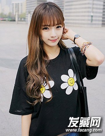 同样是一款可爱甜美风式的女生空气感刘海发型,简单的内扣式空气感刘海发型同样很受妹纸们的喜爱,而配合这种侧边式的大卷烫发与清新的棕色染发更显小女生的可爱粉嫩感。