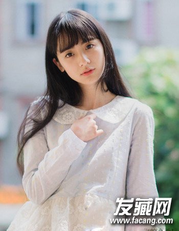 并不是柔顺的齐刘海发型带着些波纹更显气质感,一款柔顺的披肩长直发发型显露出无比的清纯气质来,甜美十足。