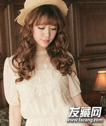 再是一款浪漫唯美风式的女生空气感刘海长发发型,蓬松式的小卷形式的长发烫发设计最显女生的魅力淑女风了,再配合清新自然的棕色染发与清新的空气感刘海更显温柔淑女风。