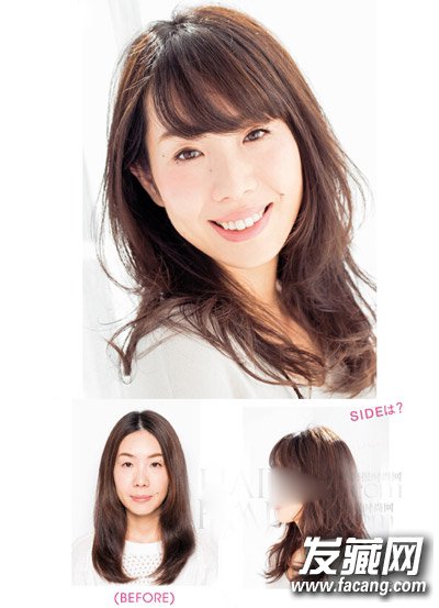 不是每个妹纸都适合中分、长发长时间中分露出非常明显的中分线看起来也挺可怕。模特的脸型较长,其实剪起刘海来比较容易把控,剪完又可以很好的修饰脸型。将头发烫成线条较多的卷发,可以让人看起来不那么呆板。
