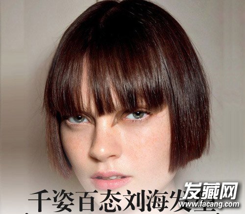 请你的发型师把长度控制在刚刚低于眉毛最为合适,而且要注意刘海要厚一些,但也切忌过厚,能若隐若现地露出额头且发尾微弯,最有时髦感。