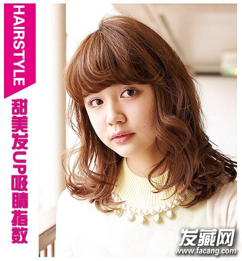 发型点评:厚重的刘海修饰出饱满的额头,棕色卷发发色饱满靓丽,衬托出呆萌可人的少女气质,吸睛指数一百分。