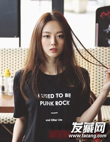 最后同样是一款清新飘逸感十足的时尚女神长直发造型,采用的是清新自然的直发设计,而配合这种中分的长刘海与棕色的染发同样清纯迷人。