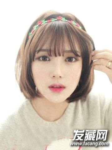 应该如何梳理齐肩短发,更显清新甜美气质呢?这款棕色系的齐刘海短发发型,加上简单的发箍点缀,倍显清新甜美气质。