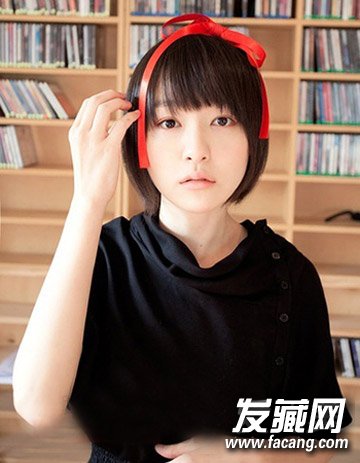 这是一款很甜美的女生齐刘海短发发型,齐脖短发柔顺直滑,齐刘海也非常的柔顺有型。
