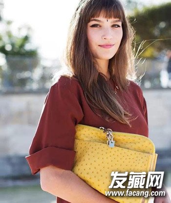 女生长直发发型配上短刘海格外洋气呢,简单自然,同时增加一点异域情调,很显个性,亚麻色长发设计显白更显嫩。