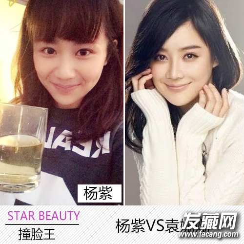 即使刘海不同,长相不同的两人也还是会撞脸,长发的样子之前也被指与袁姗姗撞脸过,微笑的弧度很像。