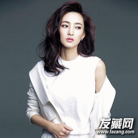 棕色的侧分长刘海烫出蓬松立体感设计,张扬出摩登冷艳气场,卷发慵懒的披散在肩头,搭配白色套装,更显干净干练。