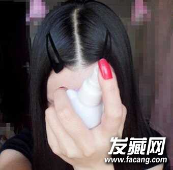 步骤5、往喷壶里装满水,然后用喷壶喷水把刘海打湿;