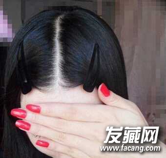 步骤4、把齐刘海中分,发际线弄好一点,然后再分别用小发夹把它固定好;