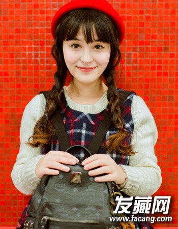 可爱的双麻花辫编发,气质的空气刘海的设计与编发结合起来勾勒出十分的甜美与俏皮感。