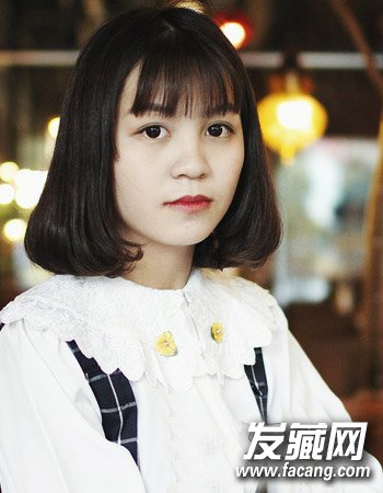 甜美的短发梨花头发型,发尾的小卷打造出别致的时尚感来,空气刘海的设计显露出无比的时尚感来,甜美十分。