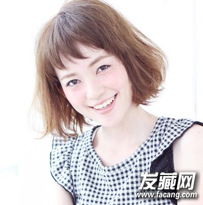 这款短梨花头搭配短碎刘海十分显俏皮气质,浅浅的巧克力色头发看起来质感轻盈,短刘海剪成碎碎的不规则形状,而蓬松的烫发发尾修饰了精致的鹅蛋脸。