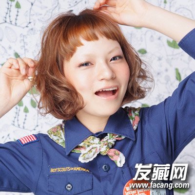 这款短梨花头很具日系风格,亚麻色的染发不仅光泽感十足,而且充满着夏日风情,不规则的短刘海裁剪搭配两耳侧的卷发很卡哇伊哦!