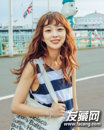 一款时尚的韩式 长发蛋卷头发型形成个性的波浪气质来,甜美的空气刘海与发丝的设计显露出无比的时尚感来。