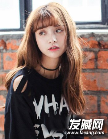 可爱的圆脸加上气质的中长发烫发发型,甜美的空气刘海与气质的亚麻色发色搭配起来显露出无比的时尚感来, 十分优雅而且甜美。
