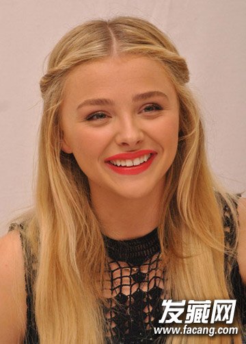 甜心少女Chloe Moretz把刘海儿拧紧后别到了耳朵两边,有点类似公主发的做法,有点小优雅又不会太做作,很适合上班的时候效仿。