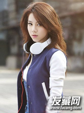 很有韩流气息的一款斜刘海卷发烫发,蓬松的波浪卷发很有淑女气质,披肩的长发加上刘海的搭配,打造出精致的瓜子脸。