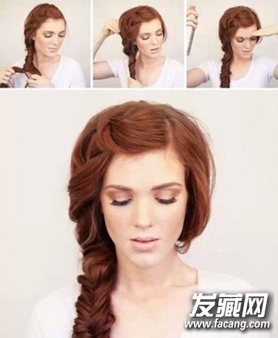 2、然后将剩下的头发进行鱼骨辫编发,拉蓬松,在蓬松定型液,这样这款发型就完成了。