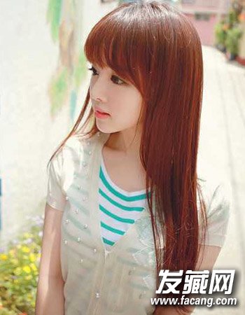 个性的韩式染发发型,时尚的亚麻色发色显得颇有光泽,一款十分养眼的披肩长发再加上内扣刘海的设计显得更加有气质感。