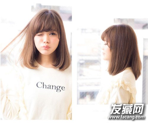 蓬松的空气刘海加上棕色及肩内扣中长发,既瘦脸又减龄,非常适合在校的学生MM哦,时尚好打理。
